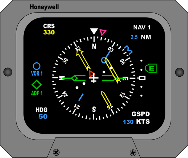 The EHSI presents a selectable, dynamic colour display of flight progress with plan view orientation. The EHSI has a number of different modes of operation which can be selected by the flight crew. The number of modes is dependent on the system fitted.