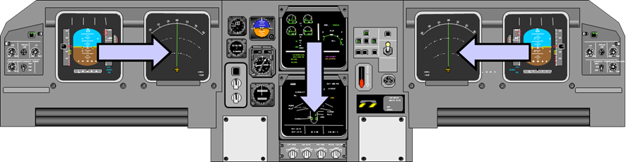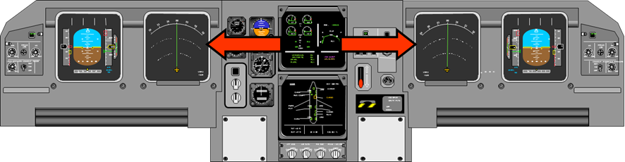 As well as a manual transfer, the system will automatically transfer displays when either the PFD or the primary ECAM display fails. The PFD is automatically transferred onto the corresponding ND, with the ECAM secondary display used for the primary ECAM display. Figure 23 shows this automatic transfer.