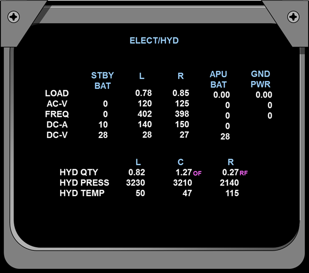 The panel is used by maintenance engineers for displaying maintenance data stored within the system’s computer memories. Figure 32 shows a typical maintenance control panel with Figure 33 showing the ELEC/HYD Maint page.